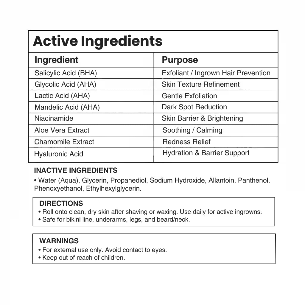 Salicylic Acid dives deep to dissolve trapped hairs, Glycolic Acid clears away dead skin blocking follicles, Zinc PCA calms inflammation and kills bacteria.